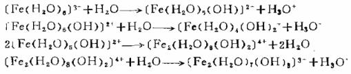 聚合硫酸鐵加入氟化鈣膠體溶液中即發生水解,在水解過程中產生大量的多核絡合物,通過膠粒表面的粘附、架橋、交聯等作用,促使氟化鈣膠體離子凝聚,產生結實的絮狀物快速沉淀。聚合硫酸鐵絡離子的水解,聚合、沉降等一系速反應可表示如下: